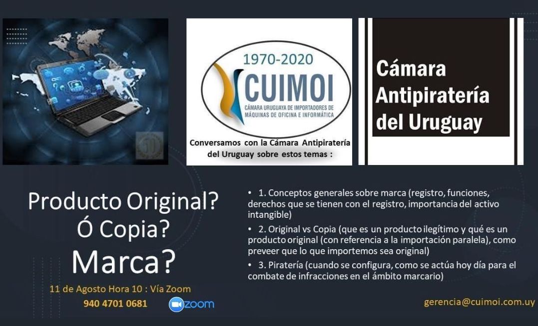 La Cámara Uruguaya de Importadores de Máquinas de Oficina e Informática y la Cámara Antipiratería del Uruguay te invitan a charlas sobre : Marca- Producto Original – Copia ?